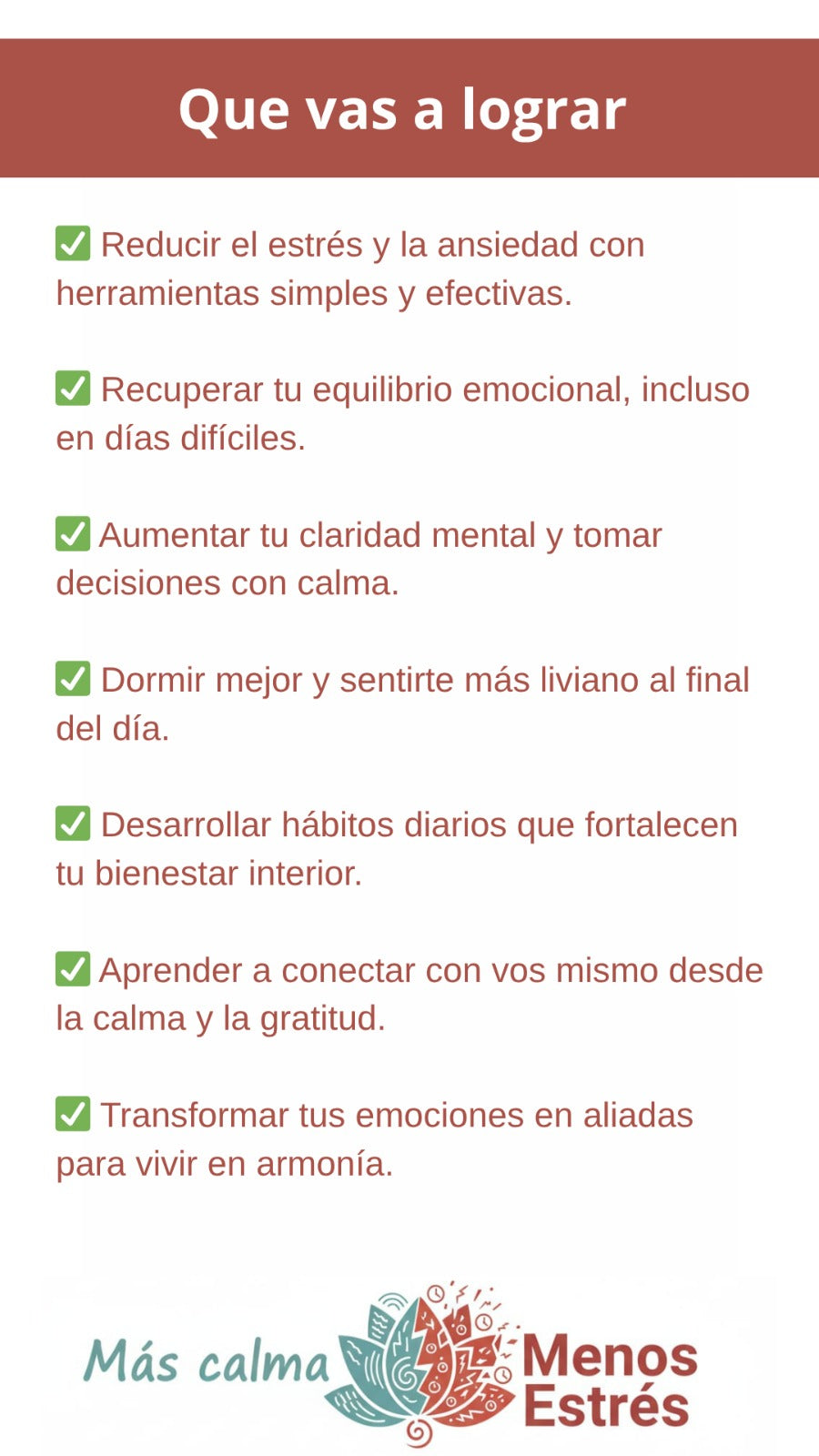 No. Está pensado para cualquier persona que quiera sentirse más tranquila, enfocada y en control de su vida. Las herramientas son simples, prácticas y fáciles de aplicar, sin importar tu experiencia previa.